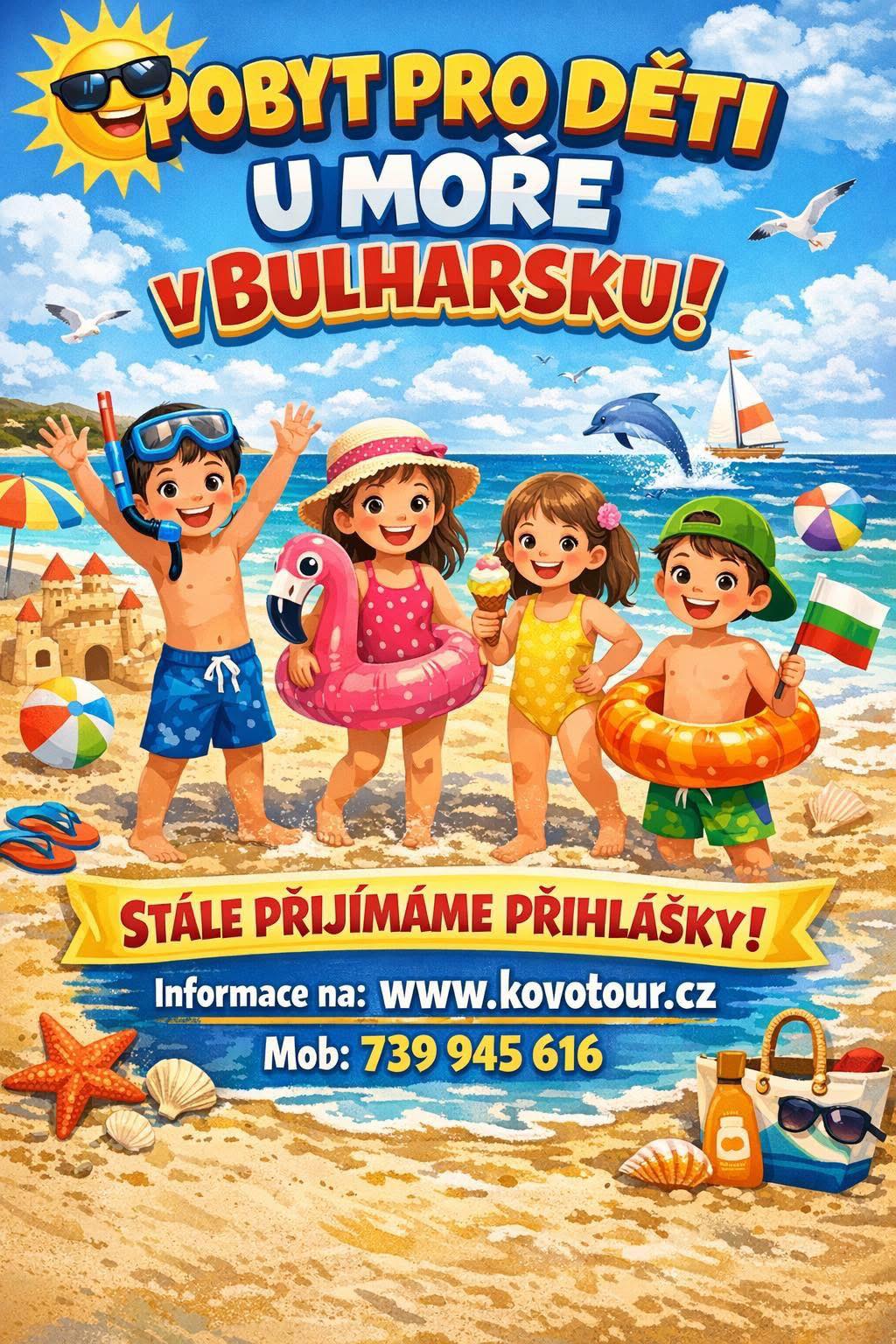 Již několik let pro Vás připravujeme léčebně ozdravný pobyt pro děti u moře v Bulharsku. Přejeme Vám nádherně strávené chvíle u moře. Z celého srdce si přejeme, abyste v naši destinaci našli to, co od ní očekáváte. Lepší zdraví, zábavu a nová přátelství. Těšíme se na Vás a pevně věříme, že na všech fotografiích a videích najdeme jen usměvavé a spokojené tváře.Lenka HajtmanováCEO KOVOTOUR PLUS s.r.o.